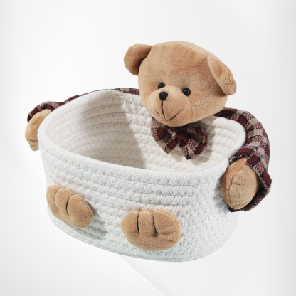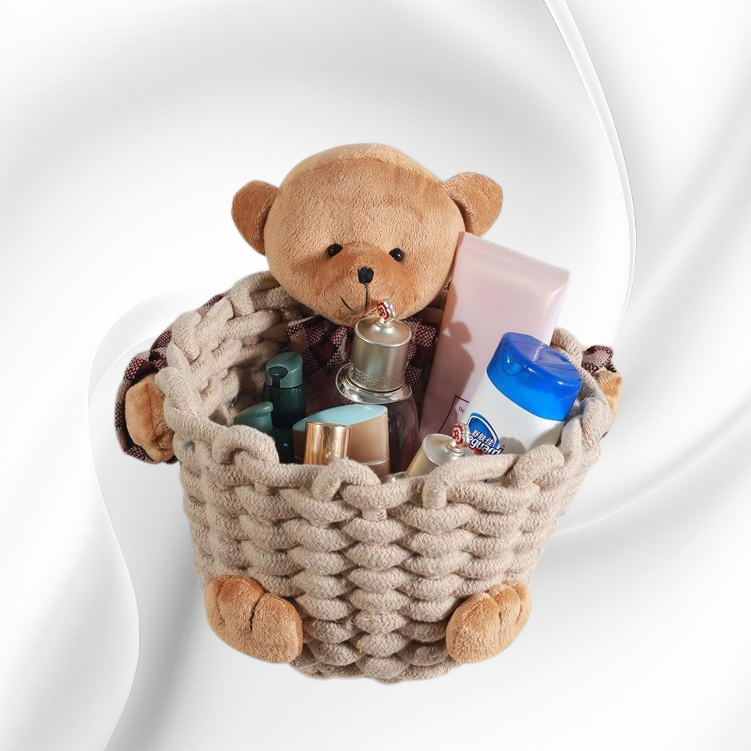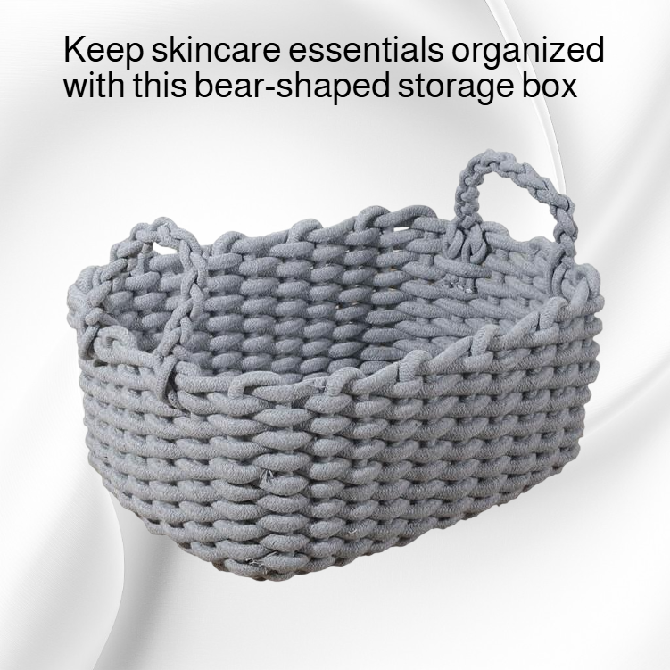 Multi-functional bear-shaped storage box for organizing skin care products. Space-saving design, durable material, easy access, suitable for bathroom or vanity. Keeps cosmetics and accessories tidy.